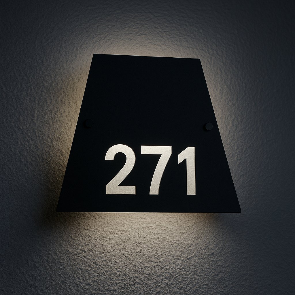 Elegantné trapézové domové číslo s integrovaným solárnym LED osvetlením.
