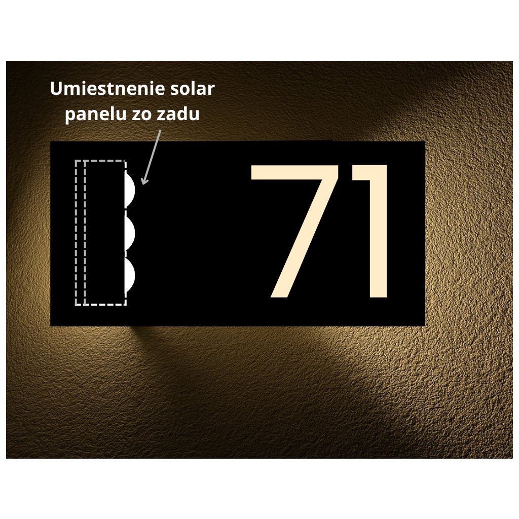 Domové číslo s integrovaným solárnym LED osvetlením, orientácia: na šírku.