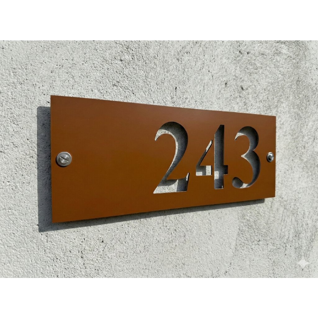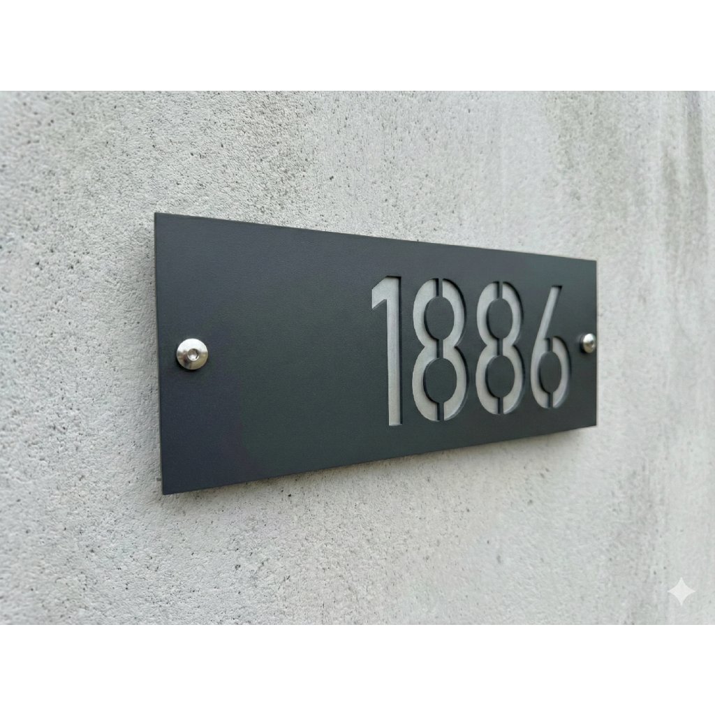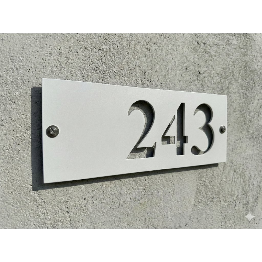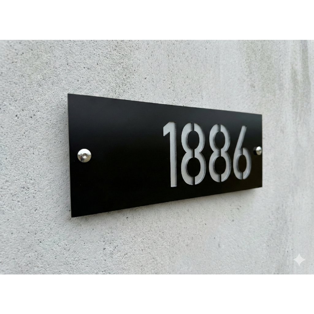 Do poznámky pri objednávke uveďte požadované číslo domu. Môžete zadať aj kombináciu znakov či písmen, napríklad 125/2a. Domové číslo je dostupné v dvoch typoch písma: verzia s pätkami pôsobí tradičnejšie a elegantnejšie (má malých ozdobných čiar na koncoch ťahov písmen), verzia bez pätiek je moderná, minimalistická a čisto geometrická. Výroba trvá približne 1 až 2 pracovné dni. Produkt je vhodný pre rodinné domy, chaty, apartmány aj novostavby.