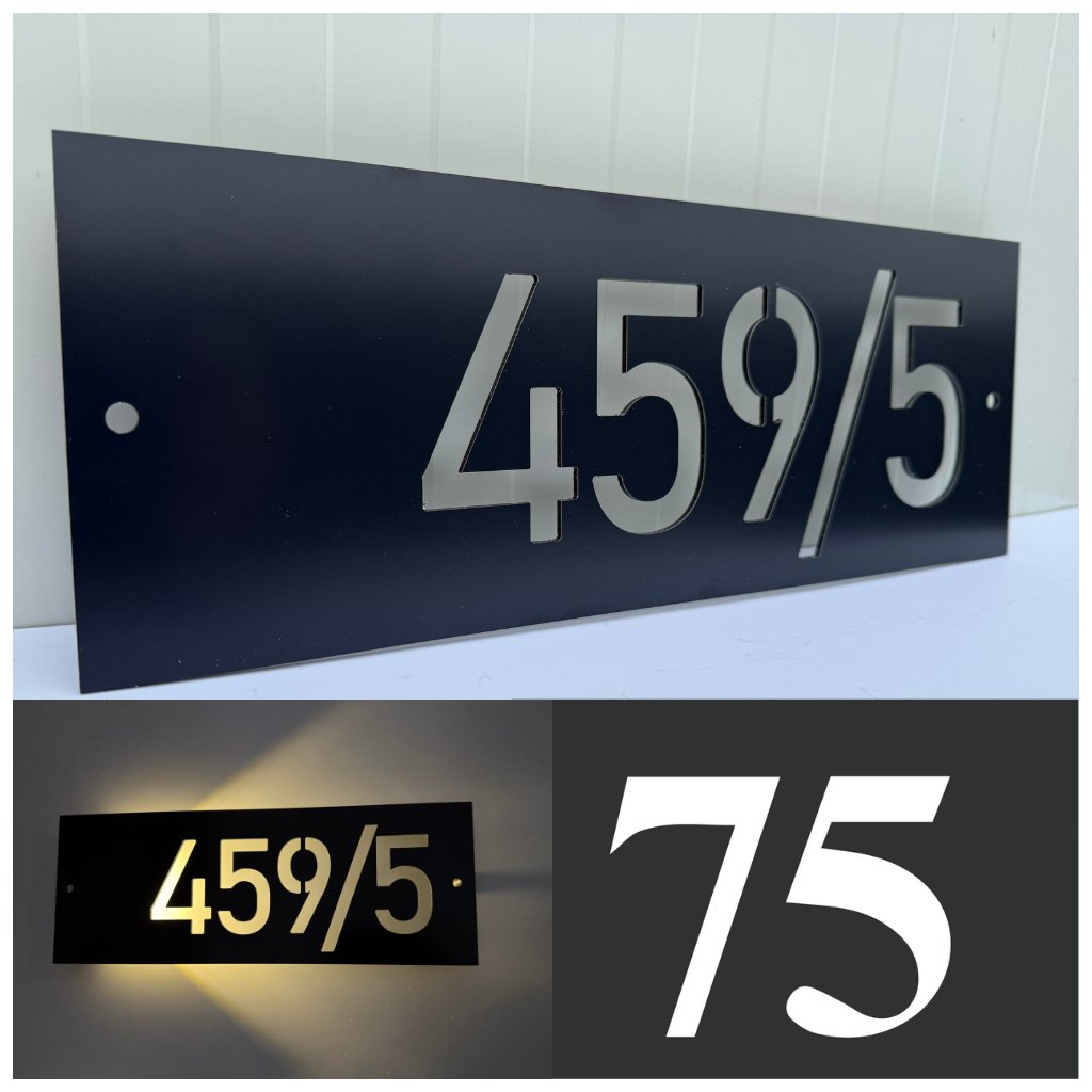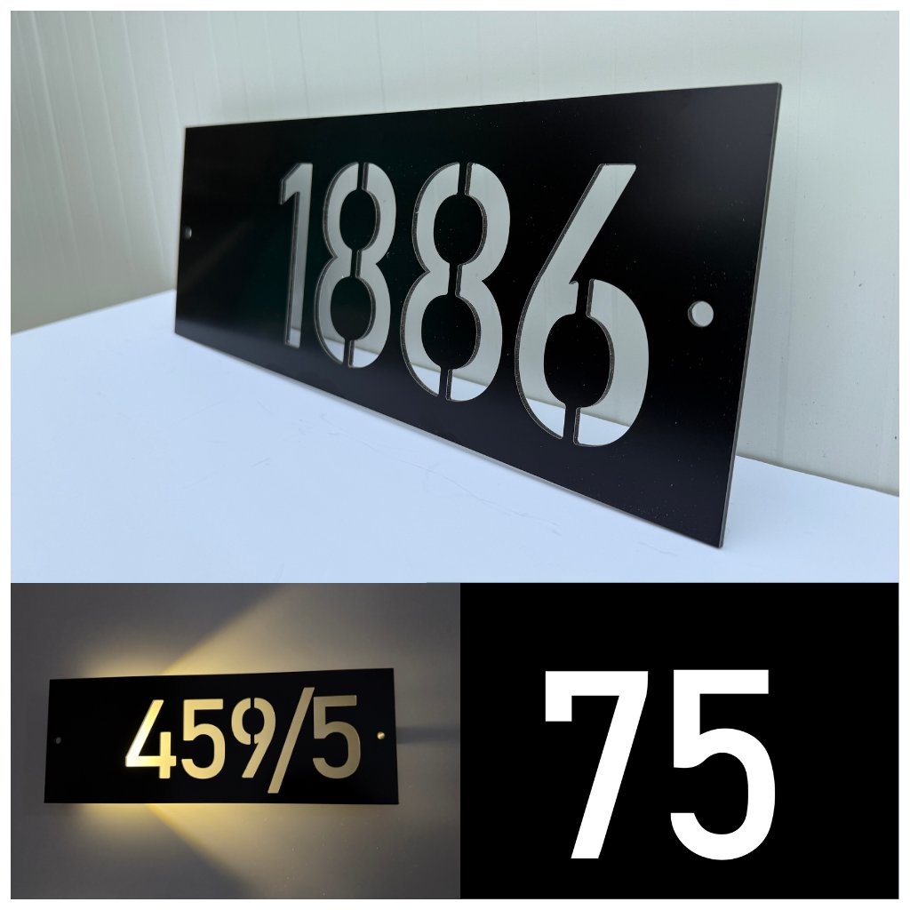 Moderné domové číslo so solárnym LED podsvietením, ktoré sa cez deň nabíja pomocou integrovaného solárneho panelu a po zotmení sa automaticky rozsvieti. Toto osvetlené číslo domu spája minimalistický dizajn, vysokú odolnosť a nulové náklady na energiu. Tabuľka je vyrobená z 3 mm hliníkovej zliatiny a samotné číslo je do materiálu precízne vyrezané v negatíve, čo zabezpečuje čistý, moderný a veľmi dobre čitateľný vzhľad. Vďaka solárnej technológii ide o bezúdržbové riešenie bez káblov, vhodné takmer na každú fasádu.