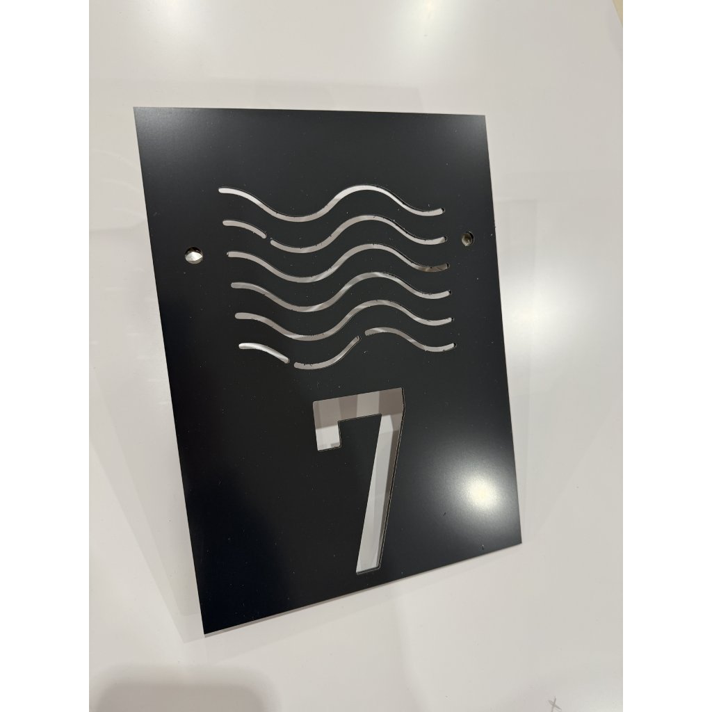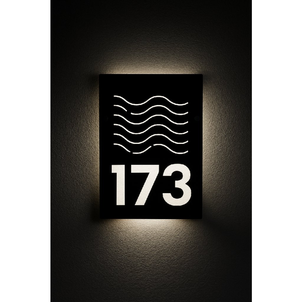 Domové číslo s integrovaným solárnym LED osvetlením. Dekorácia: vlny.