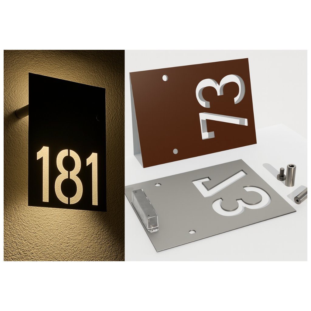 Moderné domové číslo so solárnym LED podsvietením, ktoré sa cez deň nabíja pomocou integrovaného solárneho panelu a po zotmení sa automaticky rozsvieti. Toto osvetlené číslo domu spája minimalistický dizajn, vysokú odolnosť a nulové náklady na energiu. Tabuľka je vyrobená z 3 mm hliníkovej zliatiny a samotné číslo je do materiálu precízne vyrezané v negatíve, čo zabezpečuje čistý, moderný a veľmi dobre čitateľný vzhľad. Vďaka solárnej technológii ide o bezúdržbové riešenie bez káblov, vhodné takmer na každú fasádu.
