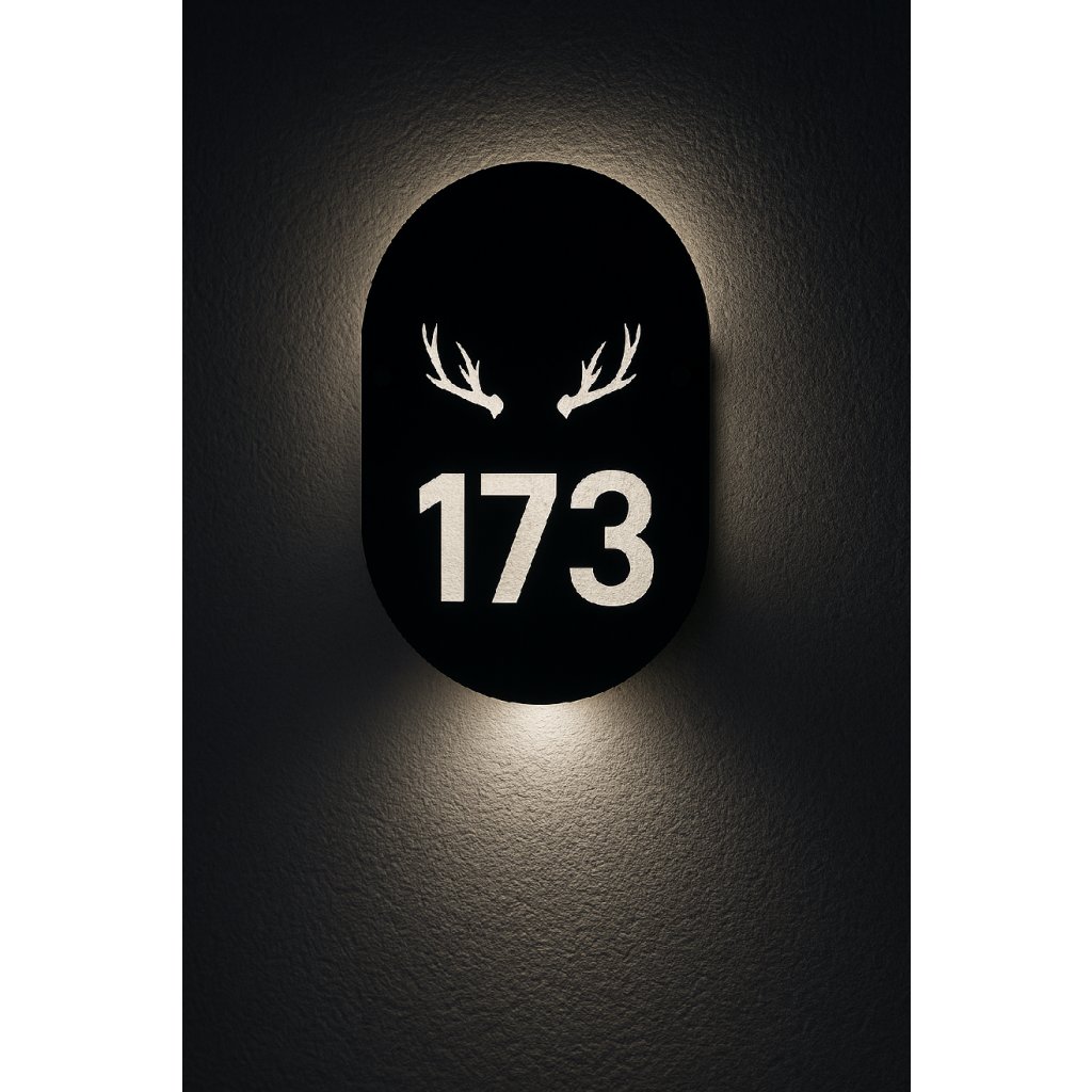 Oválne domové číslo s parohami a s integrovaným solárnym LED osvetlením.