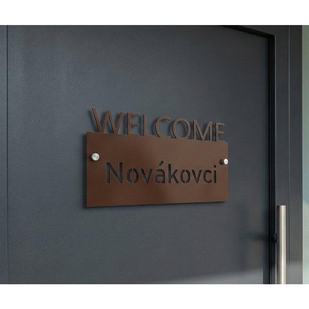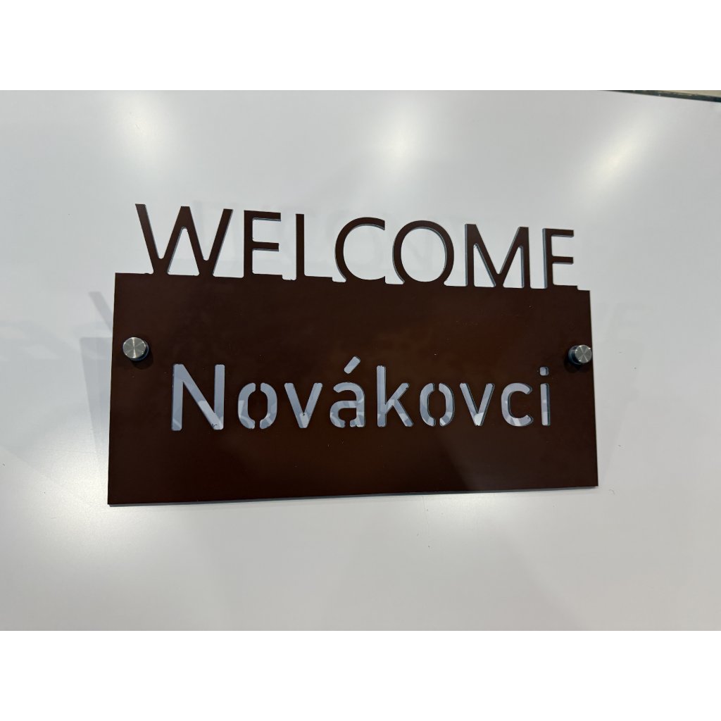 Nápis WELCOME je na tabuľu umiestnený automaticky. Do poznámky k objednávke prosím uveďte priezvisko rodiny alebo text, ktorý si želáte umiestniť pod nápis WELCOME.