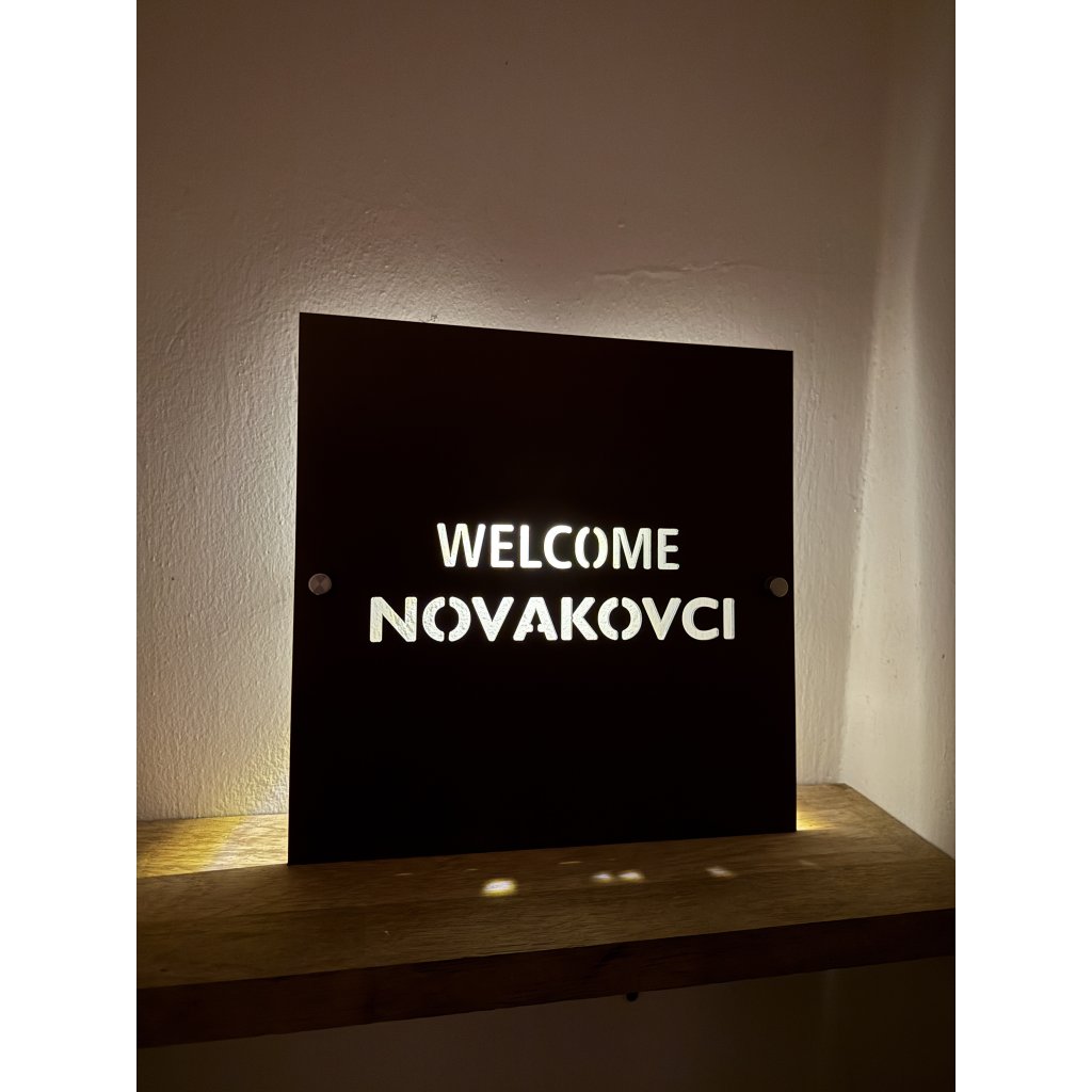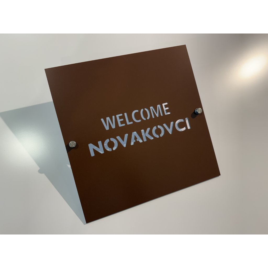 Nápis WELCOME je na tabuľu umiestnený automaticky. Do poznámky k objednávke prosím uveďte priezvisko rodiny alebo text, ktorý si želáte umiestniť pod nápis WELCOME.