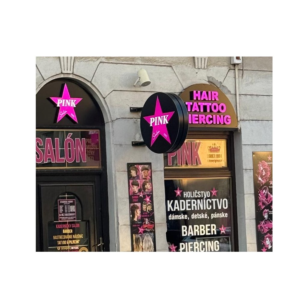 Obojstranný svetelný box (výstrčka) vo tvare kruhu je ideálnym riešením pre každú firmu, ktorá chce byť dobre viditeľná z viacerých strán – či už sa nachádzate na rušnej ulici, v pasáži alebo pri ceste. Jeho elegantný okrúhly tvar pôsobí moderne, čisto a profesionálne, čo z neho robí perfektný doplnok pre obchody, kaviarne, reštaurácie, salóny, kancelárie a ďalšie prevádzky.