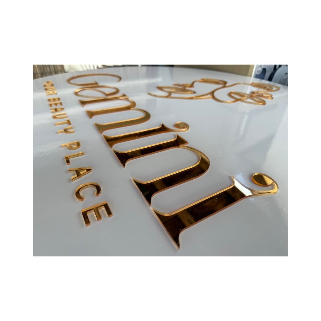 Materiál: biely plexi podklad 10 mm + 3 mm hrubé plexi písmo