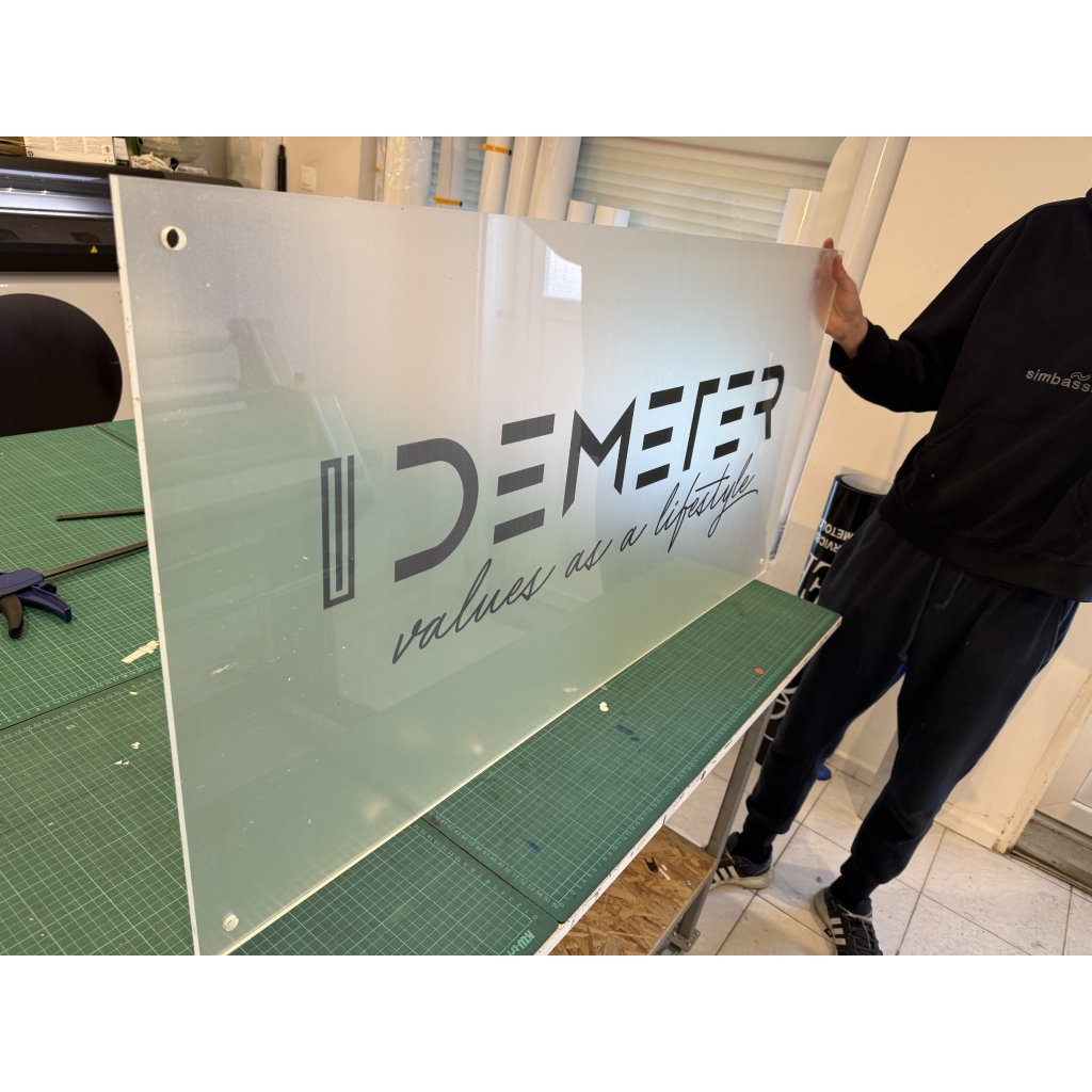 Tento nesvietiaci plexi obdĺžnik s vlastným logom je cenovo dostupná, no vizuálne pôsobivá možnosť, ako reprezentovať vašu značku štýlovo a profesionálne. Matné pieskované plexisklo jemne rozptyľuje svetlo a dodáva celej tabuli luxusný vzhľad. Vhodné aj pre detailnejšie a zložitejšie grafiky.