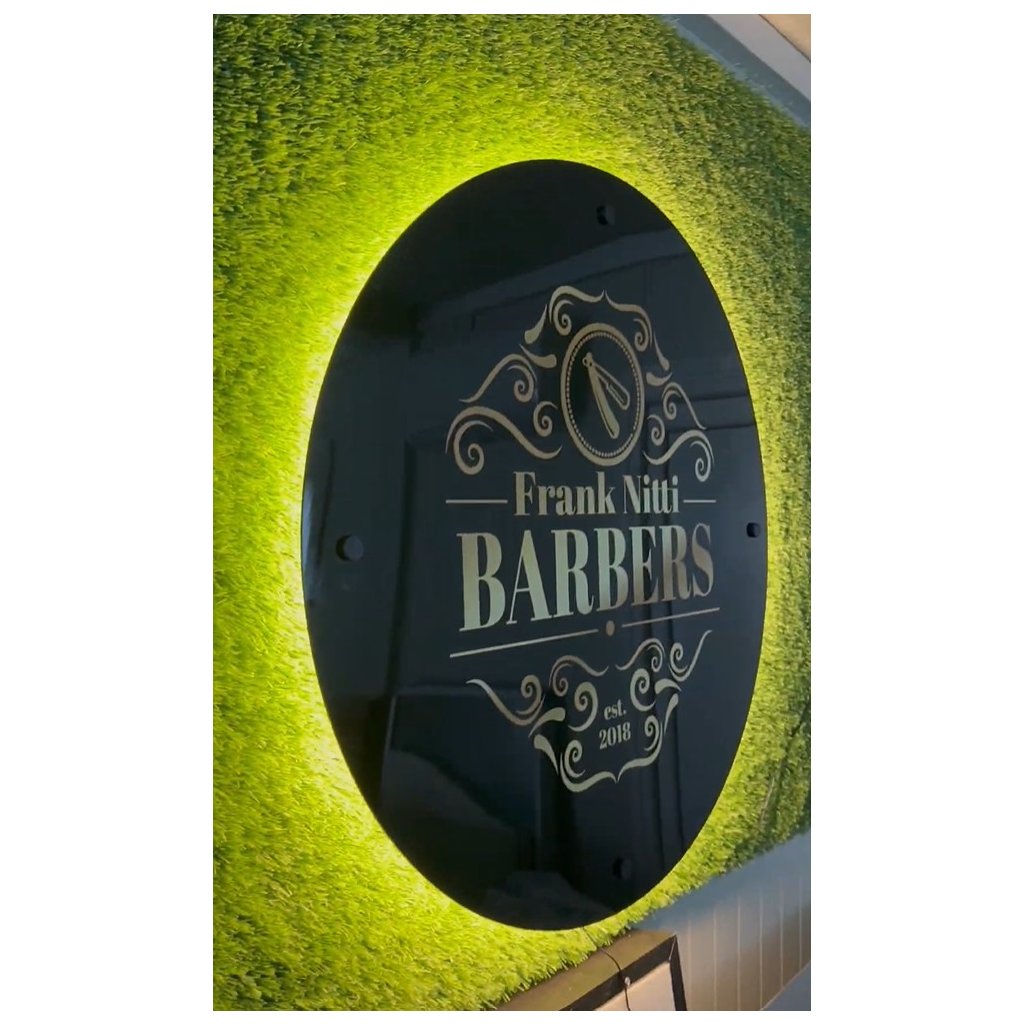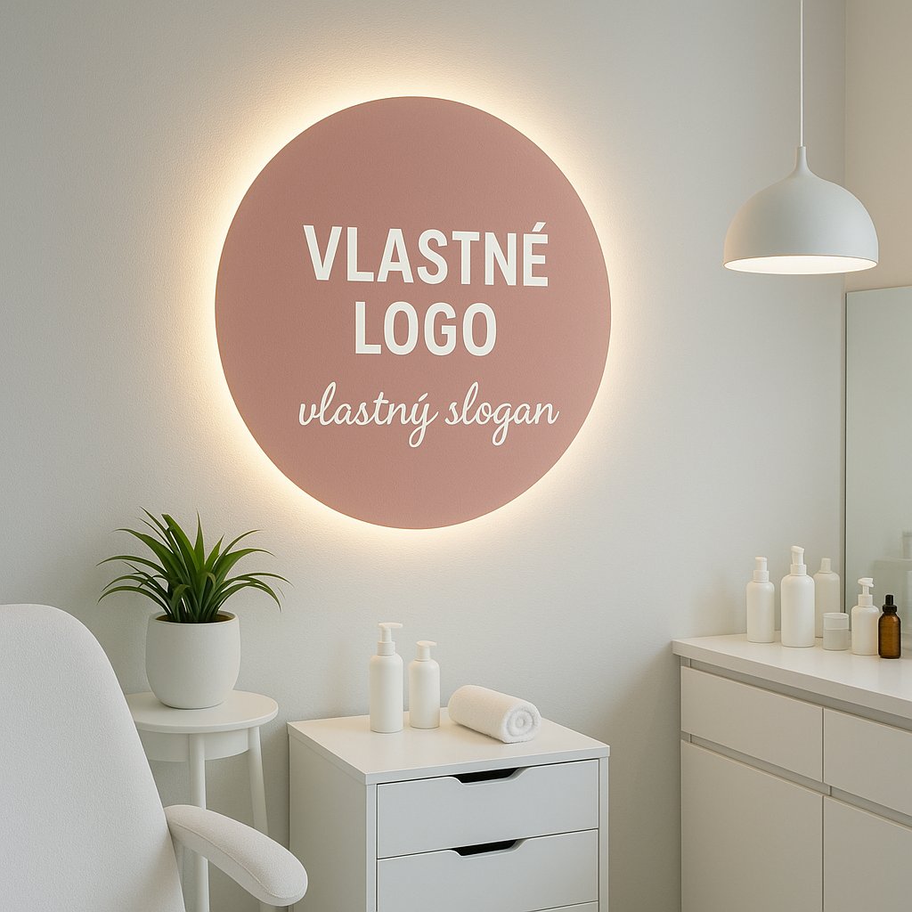 Logo je vytvorené z kvalitnej tlačenej alebo vyrezávanej fólie a precízne nalepené na hladký PVC podklad. Celá tabuľa je nasvietená LED pásikom zo zadnej strany, vďaka čomu vzniká jemný svetelný efekt okolo loga – ideálny na upútanie pozornosti.
