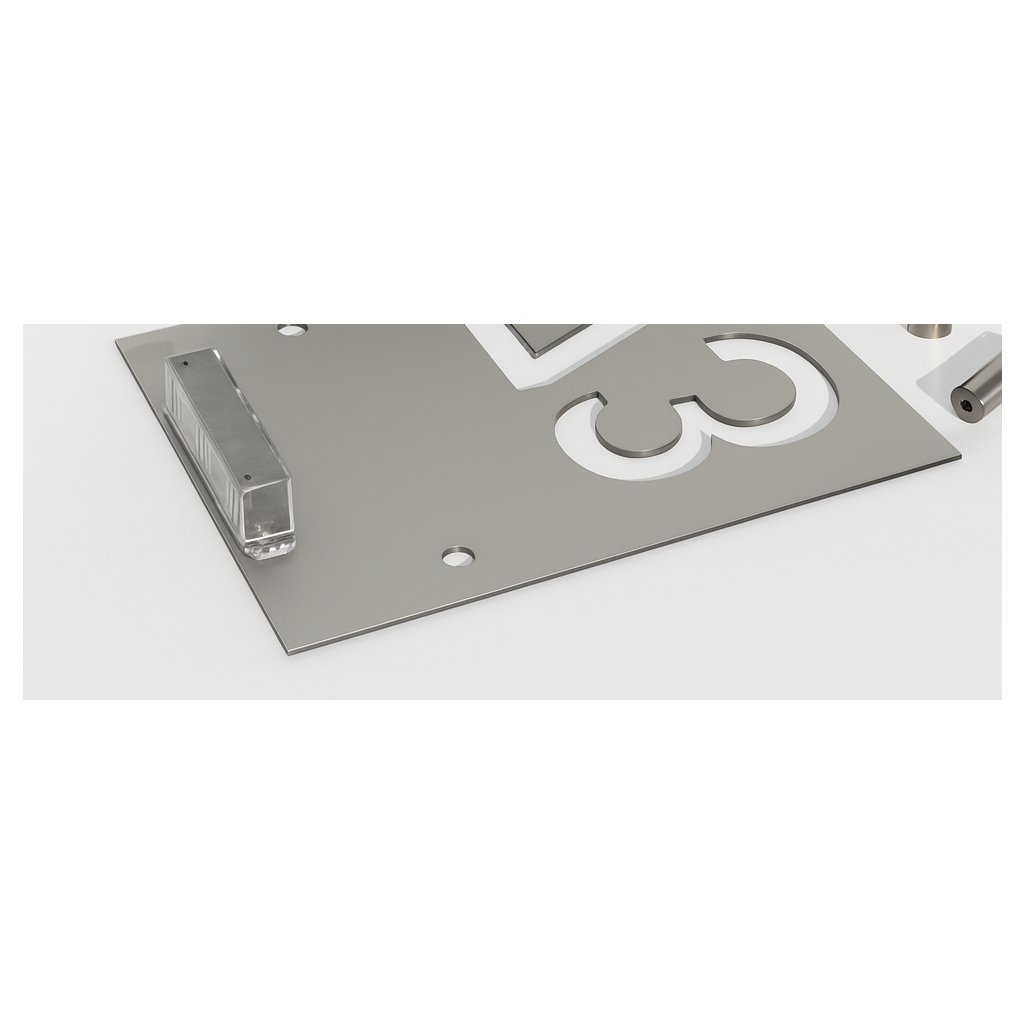 Moderné domové číslo so solárnym LED podsvietením, ktoré sa cez deň nabíja pomocou integrovaného solárneho panelu a po zotmení sa automaticky rozsvieti. Toto osvetlené číslo domu spája minimalistický dizajn, vysokú odolnosť a nulové náklady na energiu. Tabuľka je vyrobená z 3 mm hliníkovej zliatiny a samotné číslo je do materiálu precízne vyrezané v negatíve, čo zabezpečuje čistý, moderný a veľmi dobre čitateľný vzhľad. Vďaka solárnej technológii ide o bezúdržbové riešenie bez káblov, vhodné takmer na každú fasádu.