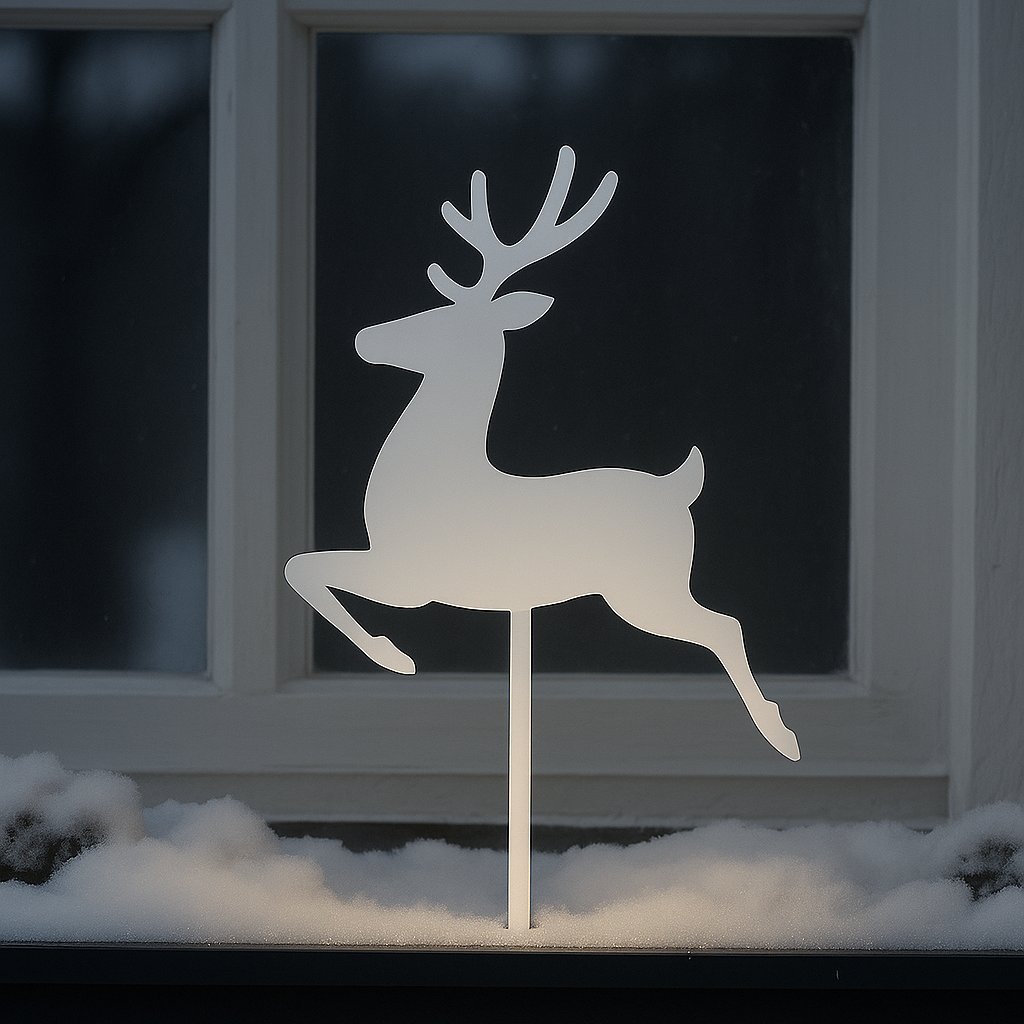 Vyrobené z kvalitného dibondu, vhodné na vonkajšie použitie. Vďaka praktickému hrotu sa ľahko zapichne do snehu, hliny alebo dekoračného obalu. Perfektné na parapet, predzáhradku či do truhlíka na okne.