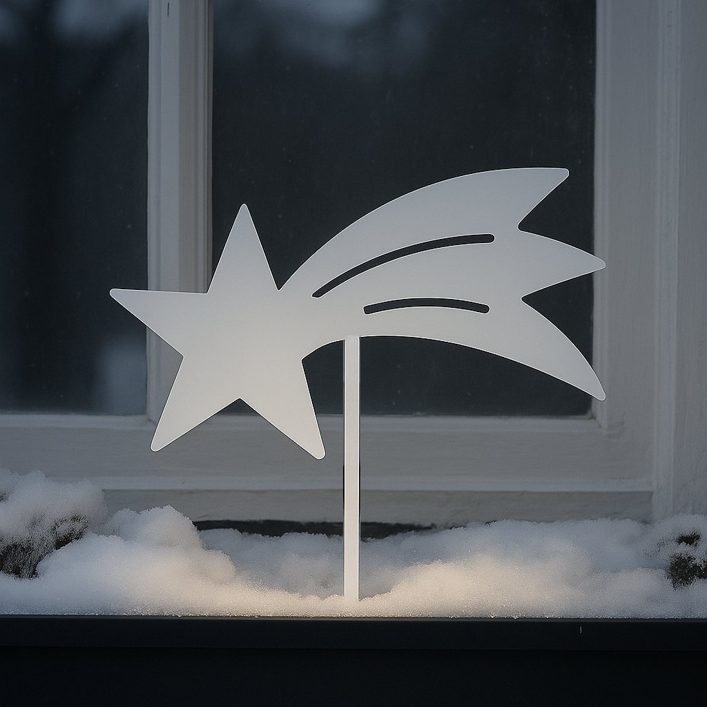 Vyrobené z kvalitného kovu s práškovým nástrekom, vhodné na vonkajšie použitie. Vďaka praktickému hrotu sa ľahko zapichne do snehu, hliny alebo dekoračného obalu. Perfektné na parapet, predzáhradku či do truhlíka na okne.