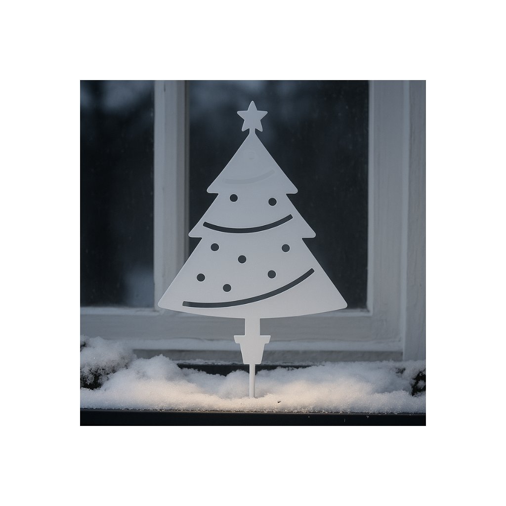 Vyrobené z kvalitného dibondu, vhodné na vonkajšie použitie. Vďaka praktickému hrotu sa ľahko zapichne do snehu, hliny alebo dekoračného obalu. Perfektné na parapet, predzáhradku či do truhlíka na okne.