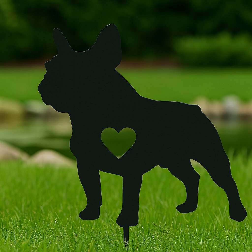 Záhradná dekorácia – Francúzsky buldoček so srdiečkom (zapichovací)