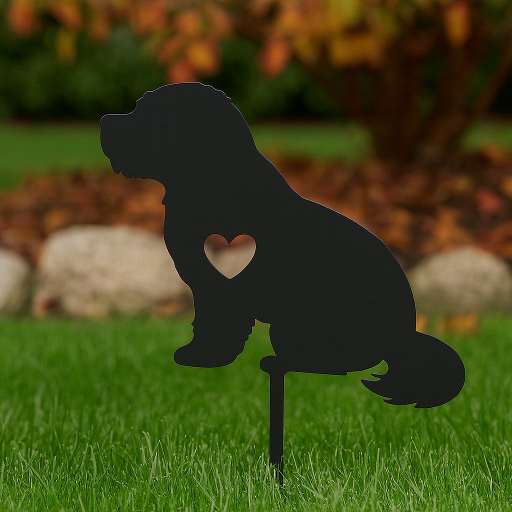 Roztomilý maltezák so srdiečkom, vyrezaný z dibondu – jednoducho zapichnete do zeme ako dekoráciu.