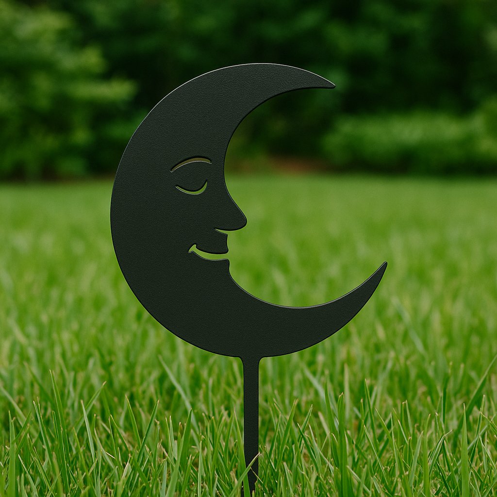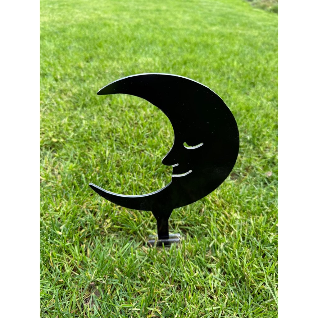 Dodajte svojej záhrade čaro noci s touto elegantnou siluetou mesiaca s úsmevom, vyrezanou z čierneho dibondu. Jemne zaoblený tvar a vyrezávaná tvár s pokojnou mimikou prinášajú do priestoru harmóniu a pokoj. Vďaka praktickému zapichovaciemu tŕňu je možné dekoráciu ľahko umiestniť do trávnika, záhonu či črepníka.
